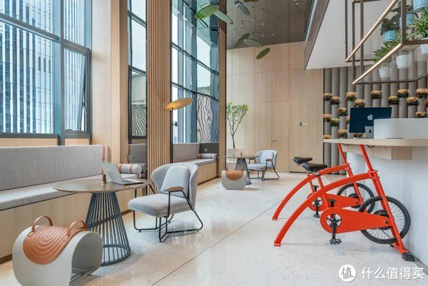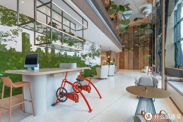 在这里,健康的生活方式与旅行的乐趣融为一体。前台一侧设置了蓄电动感单车,在等待办理入住的同时,可以在这里运动一下,用踩单车的方式给手机充电。