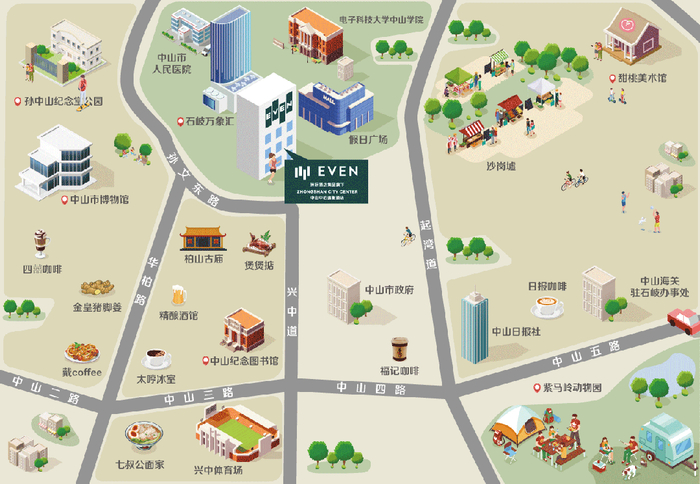 中山中心逸衡酒店慢跑地图中山中心逸衡酒店坐落于石岐街道繁华的商业街孙文东路上,楼下便有大型商业综合体,吃住行游购娱一应俱全,而且无论前往中山站还是中山港码头,都非常方便。