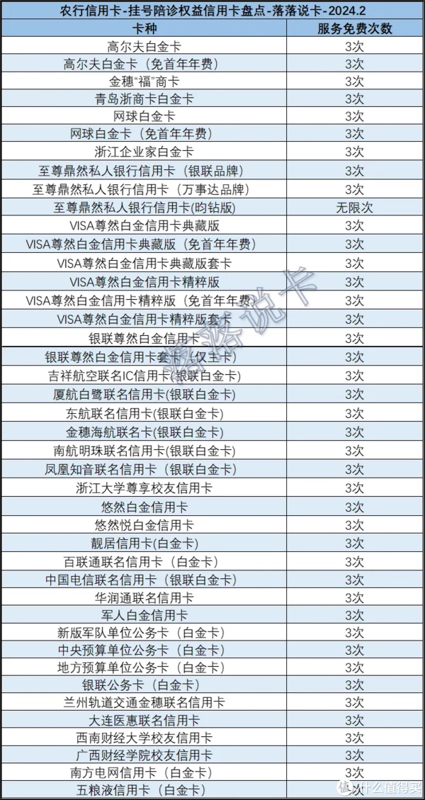 挂号权益信用卡盘点