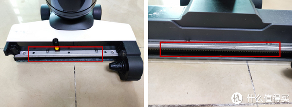 但是米博V6A推过去,非常干净利落,这么好的效果与结构是有直接关系的。PVC材质的地刷条每分钟在地面旋转3000次,清洁力是非常高效的。