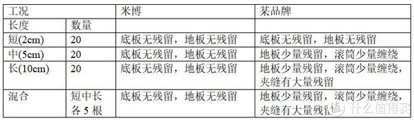 在毛发测试中,科学院力学研究所采取的是试用类似头发的棉线进行模拟实验来分析米博V6A对于毛发的清洁能力和防缠绕能力,测试结果如下:
