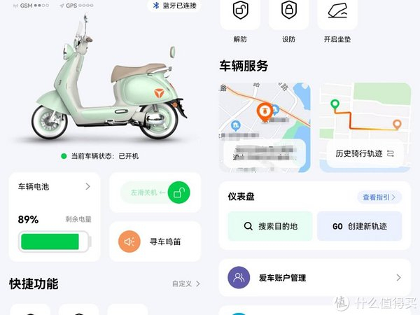 ▲连接完成后就可以看到车辆的相关信息,是否锁车,剩余电量等都可以看到。车辆自带GPS定位,在APP上就可以看到车辆所在位置,还可以设置电子围栏,划定车辆安全范围,有异动立即手机提醒。