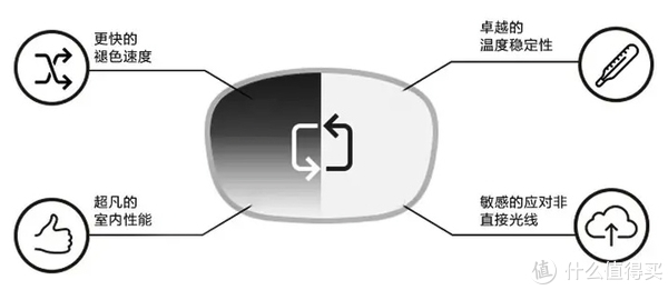 无论是膜层变色还是基片变色,两者效果不分伯仲,各有其优劣势,而在实际佩戴中都有出众的体验效果。随着变色技术不断的提升与产品的迭代更新,变色技术的发展趋势更注重变色与褪色速度,颜色的稳定性,镜片的变色寿命以及出众的“防紫外”效果。