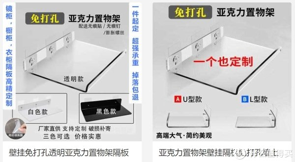 我估计,有人看到后会跟风。这种应该是在墙上粘贴了“亚克力”架子。虽然看不太清具体材质,但通过下面这种亚克力,应该能达到上面网友的效果。