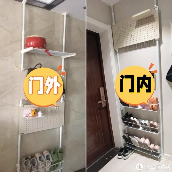 不安装鞋柜,而是在入户门内外安装这种“天地架”,有一说一,这种想法也是非常值得借鉴!