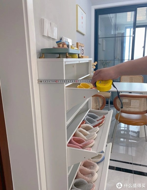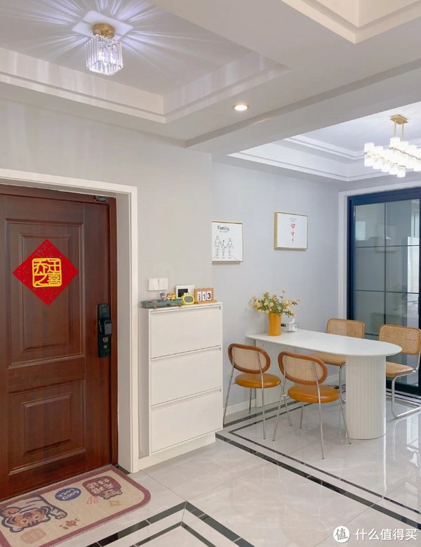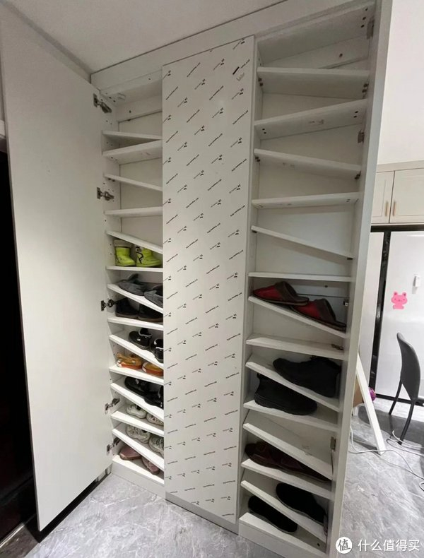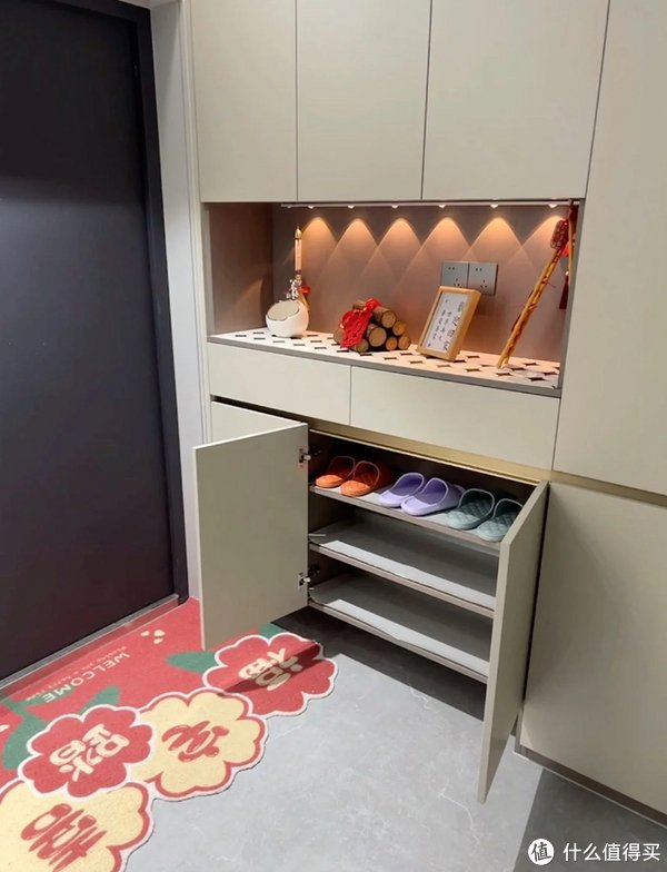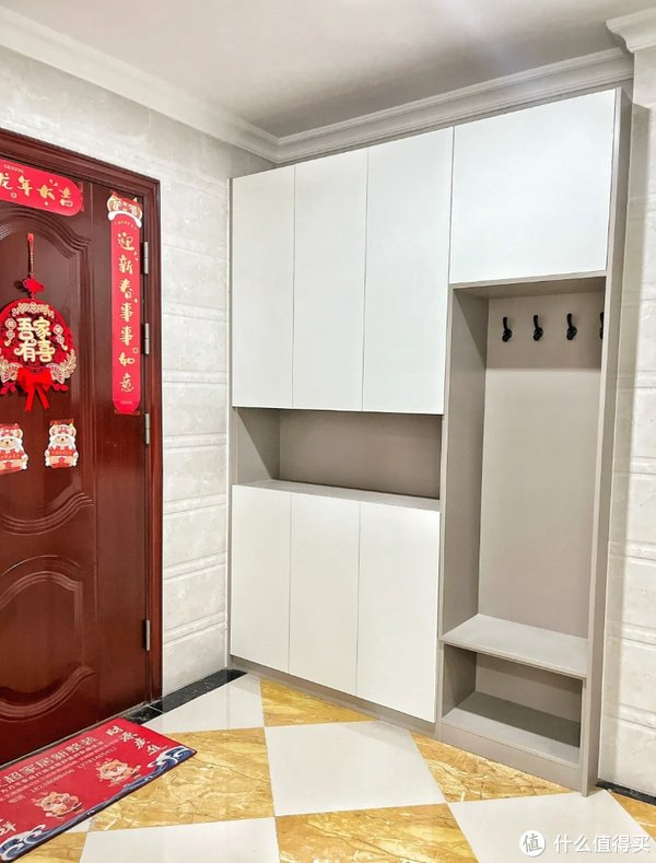 其实有不少开发商建设的房子,没有入户玄关,开门后就是客餐厅。这着实让不少人头疼“鞋柜怎么装”。其实上面这位网友的做法就很不错:将鞋柜做超薄设计并上墙,不仅不影响美观,而且还能够解决鞋子的收纳难题。