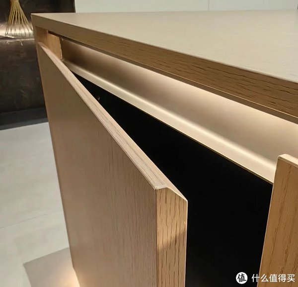 不仅局限于柜子侧面,有时候柜子的开放格、吊柜的底部也做见光板。