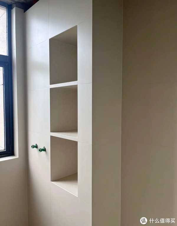 可实际上现代的家庭,几乎不可能直接在墙上挖洞,所以一般都是在阳台、卫生间等需要包管的地方,新建一个墙体,留出一个壁龛,用来储物。