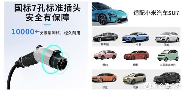 挑战者同样采用国际标准的7孔枪头,镀银的工艺,绝缘阻燃,防水等级来到了IP55级更耐用,配置了6米长的TPU材质枪线,更轻便更好用,同样适配市面上9成的电车,后续换车也能接着用。