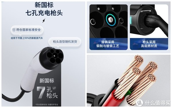 采用7孔充电枪头,适用于大部分的电车。插销采用铜制与银镀工艺,枪头采用高阻燃材质,无氧纯铜的线材让充电安全更上一层楼。10米长的枪线让充电的受限范围更小,使用更舒心。