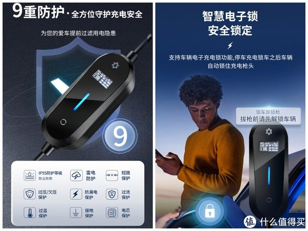 安全性方面也可以完全放心,车规级品质,防护等级达到了IP55级,更有过压、过温、防漏电等9重防护。还设计有电子锁,锁车即锁枪,防盗意识100分。