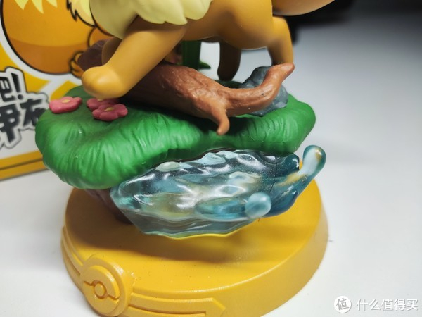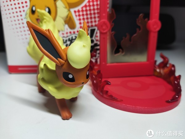 盲盒中包含一个不同属性的伊布和一个场景地台,这些造型以伊布的日常活动造型和对应属性地台为背景,我这个开出的就是经典的火属性火伊布,每个玩具手办搭配地台,更像是一个小型的情景剧场。