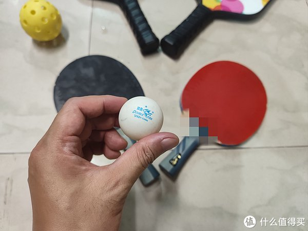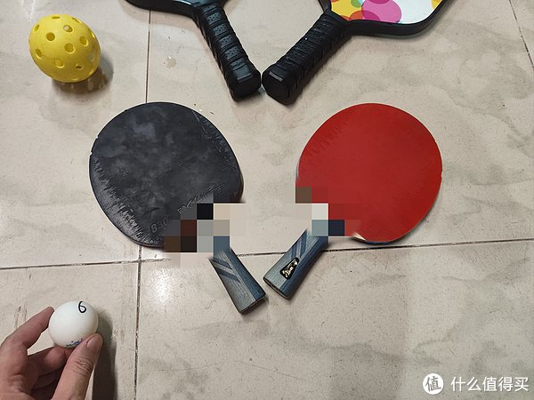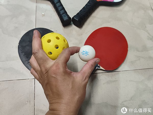 乒乓球和匹克球对比一下,乒乓球差不多比匹克球小了一大圈,其实匹克球就是和网球差不多大小,但没有网球那么重。