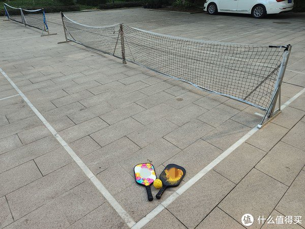 所以,匹克球就是乒乓球、羽毛球、网球的混合体,我估计当时发明匹克球的小哥只有羽毛球的场地,但是找不到羽毛球拍,只有乒乓球拍,找不到乒乓球,只找到网球,但是羽毛球场地打网球的话,球网又比较高,就将计就计,调成网球一样的高度,大家就这样开心的玩起来了!