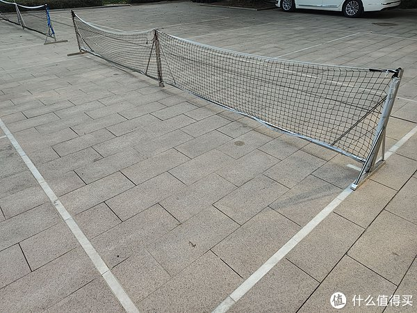 给大家看看,我今天就是带小宝过来打匹克球了,这个就是匹克球的场地,占用的面积不是很大哦,打法也简单,和乒乓球一样打过来,打过去就好,用小宝的话说就好像闹着玩似的。