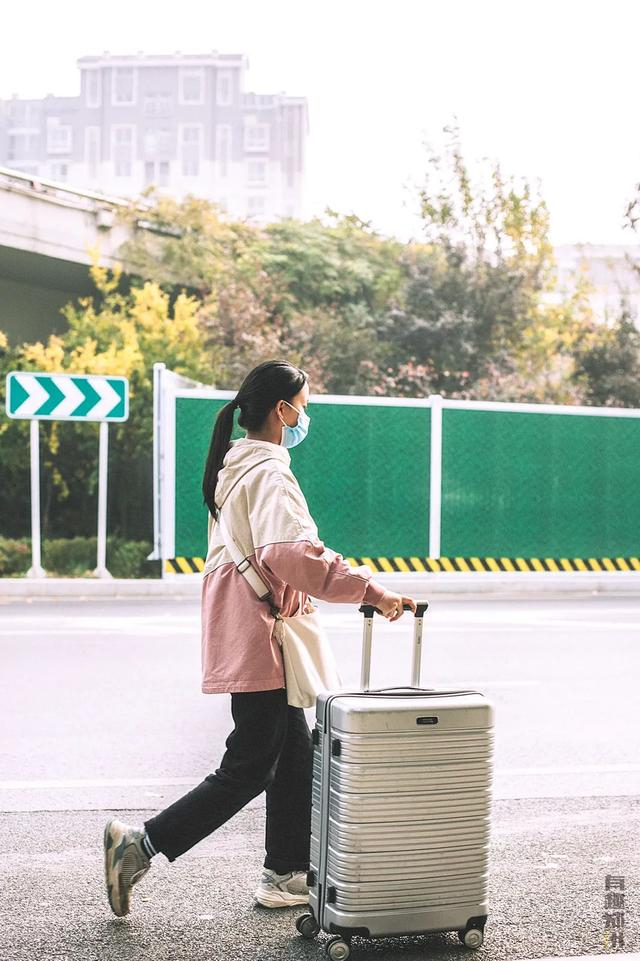 ▏拉着行李去火车站坐车的少女
