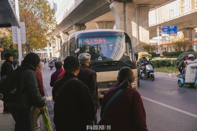 你会跟这一车的大爷大妈进入苗圃街,拐过桥洞走入印刷厂街,淌过熊耳河来到新郑里,突然就豁然开朗地上了南关街,最后来到热闹的银基等服装批发市场门口。