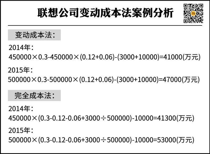 在2014年、2015年两年之内,联想公司的销售和税前利润之间是脱节的,如果采用完全成本法核算,销售得越多反而利润越低,最终企业利润表中的当期税前利润和联想公司的实际经营情况并不相符。
