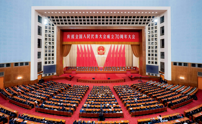 >>2024年9月14日上午,中共中央、全国人大常委会在北京人民大会堂隆重举行庆祝全国人民代表大会成立70周年大会。新华社记者 翟健岚/摄
