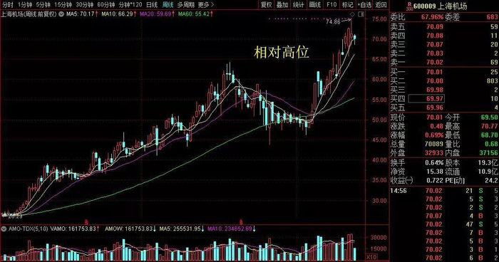 周线确定相对位置,从图上走势可知上海机场的股价肯定是处于相对高位的,但这个高位也只是相对而已。