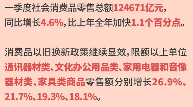近年来,为提振消费、促进经济复苏,中央和地方各级政府出台了一系列刺激政策,涵盖汽车、家电、住房、文旅、免税等多个领域。而1季度全国统计数据也显示,部分消费板块受政策刺激,零售额高速增长!
