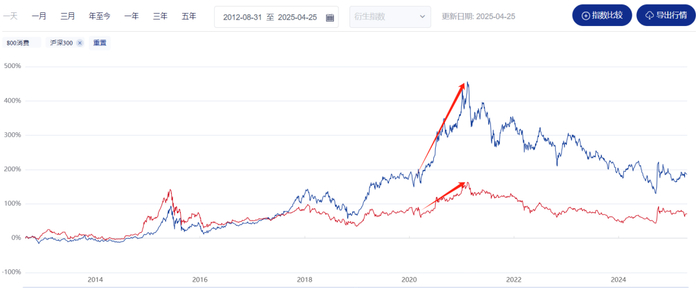 • 中证消费龙头指数自2012年发布以来上涨约200%,远超同期沪深300+80%)。