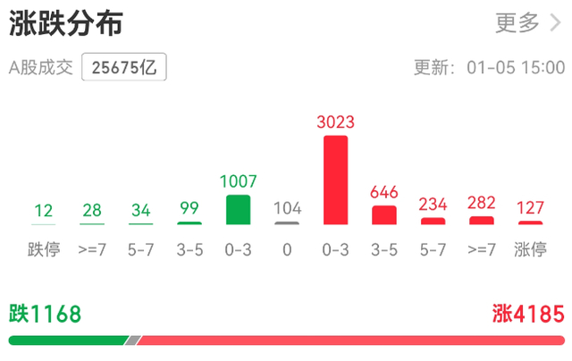 2026年1月5日,新年首个交易日,A股三大指数集体上涨,上证指数收涨1.38%,重回4000点之上。全市场逾4100只个股收盘飘红,单日总成交额超2.5万亿元。
