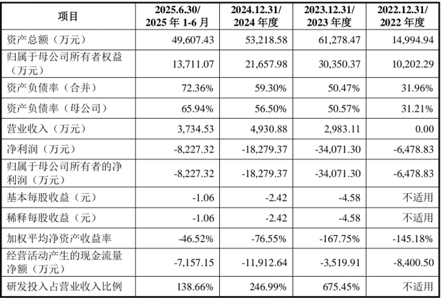 从营收结构来看,公司营收规模始终处于低位,2023年实现营收2983.11万元、2024年4930.88万元,2025年上半年3734.53万元,核心产品ECMO系统虽已覆盖全国超140家医院,并进入北京安贞医院、301医院等顶尖三甲机构,但单台设备百万级的售价尚未带来规模化营收,难以覆盖高额的研发与运营成本。