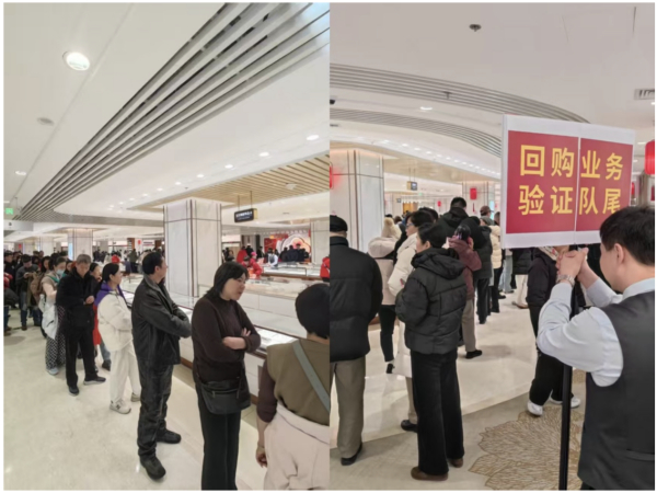 2月1日北京菜百入口以及三楼黄金回收区排队现场