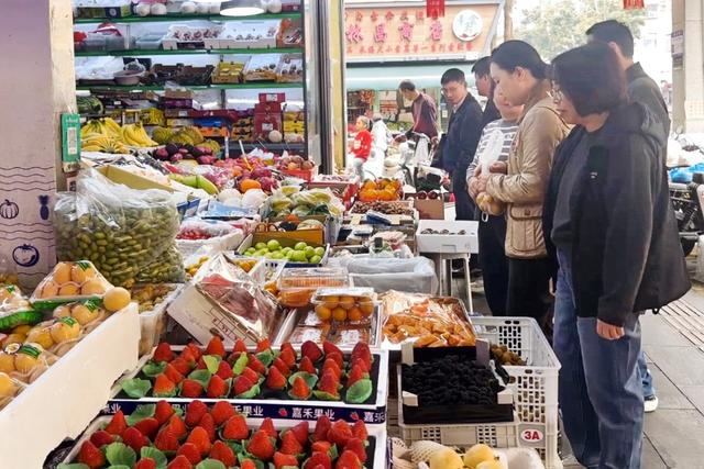 蛇口市场内一水果摊前人头攒动,《华夏时报》记者看到老板娘和店员正麻利地为顾客挑选水果,而一旁标有“嘉禾水果”字样的草莓却鲜有人问津。“今年价格降了很多,以前丹东草莓一斤卖七八十,现在四十块就卖了。”深圳蛇口市场水果庄园店员蔡碧凤一边整理货架一边说,“因为市场人流量大,买的人还是多,但很多是40岁左右有家庭的,或者年轻人图个新鲜。”她手中的丹东草莓来自南头批发市场,甜度高、个头大,曾是年前的送礼热门,如今却以“平价”姿态走入日常果盘。