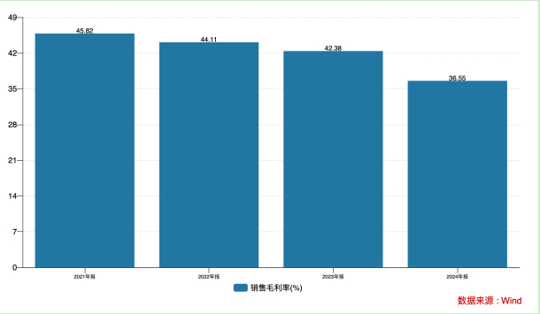 (截图来自2025年三季报)2021年至2024年,万东医疗毛利率从45.82%一路下滑至36.55%,2025年前三季度进一步降至32.62%,创下五年新低。