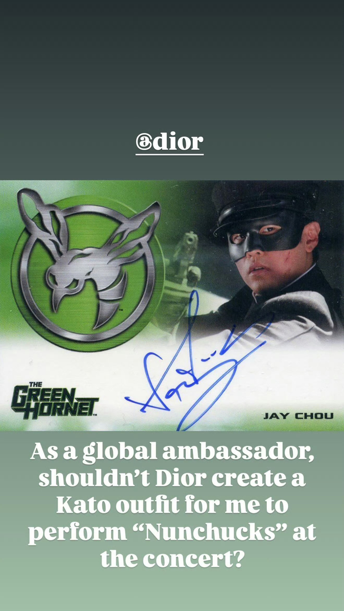 周杰伦:谁拿走了我的面具?作为全球大使,迪奥难道不应该为我打造一套Kato服装,在演唱会上表演《双截棍》吗?