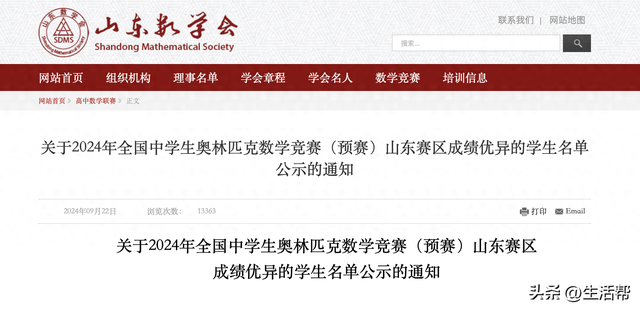 为了确保竞赛的公平性和透明度,山东数学会将成绩优异的学生名单进行了公示。公示时间为9月22日至9月24日,期间,任何对成绩有异议的个人或学校都可以通过官方渠道提出申诉。
