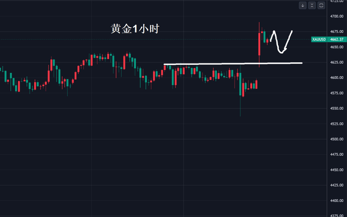 今天,金价回踩关键点在于顶底转换及早盘跳空高开的位置,4640和4620美元衡量多空的分界点,也就是说守住这里多头继续,缺口已经欠了三个了短期回补困难,依4640和4620美元的支撑做多即可。