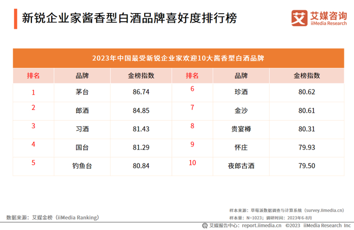 新锐企业家酱香型白酒品牌喜好度排行榜