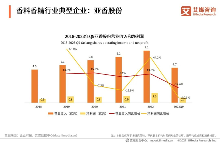 数据显示,2023年前三季度,亚香股份营业收入为4.7亿元,净利润为0.7亿元,营收和净利润同比下降,且降幅较大,主要是由下游需求短期降低与主要产品产能降低等原因所致。未来,预计泰国生产基地建设完成后,随着下游需求的回升,企业营收状况将有所好转。