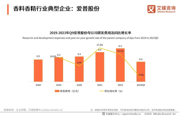 爱普香料集团股份有限公司成立于1995年,是中国香料香精和食品添加剂行业的制造企业,产品涵盖食用香精、日化香精、香料及食品添加剂。2015年3月,爱普股份获得8.19亿元的融资金额,于上海证券交易所上市。企业已成为国内香料香精行业能全面研发和生产各类香料香精的企业,每年研发费用投入占销售收入的4~6%。