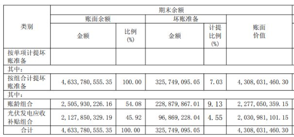 深究发现,高企的应收账款给林洋能源带来了风险隐患。林洋能源2024年应收账款账面价值高达43.08亿元,虽同比下降4.72%,但占总营收的比重达63.89%。光伏发电应收补贴的未到账,成为公司应收账款高企的重要原因之一。财报显示,光伏发电应收补贴组合账面价值20.31亿元,占当期应收账款账面价值的47.14%。