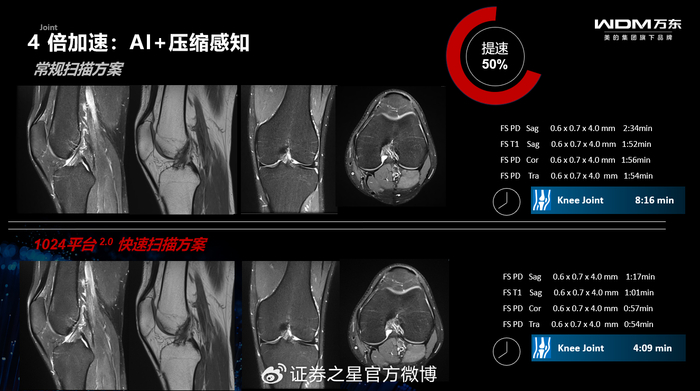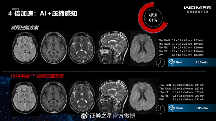 平台内置国产自研NPU芯片,实现了算力自主。其标志性的“1键扫描、0秒准备、2倍病灶检出、4倍扫描加速”能力,已深度集成于万东磁共振产品系列,尤其在双子星AI 3.0T磁共振上表现卓越,并在福建等地临床应用中获得了“扫描速度快、图像分辨率高、功能强大,能为临床提供更多诊断依据”的高度评价。
