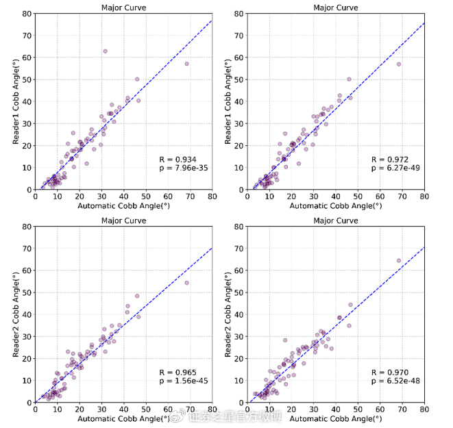 The Pearson correlation only on major Cobb angle of AP view images
