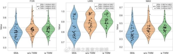 在标准重建(SRA)、无TWM和有TWM方法的FOR、LIRS和MAS指标比较