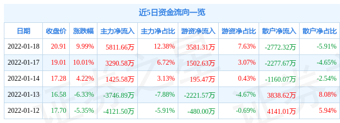 资金流向数据方面,当日主力资金净流入5811.66万元,游资资金净流入3581.31万元,散户资金净流出2772.32万元。近5日资金流向一览见下表: