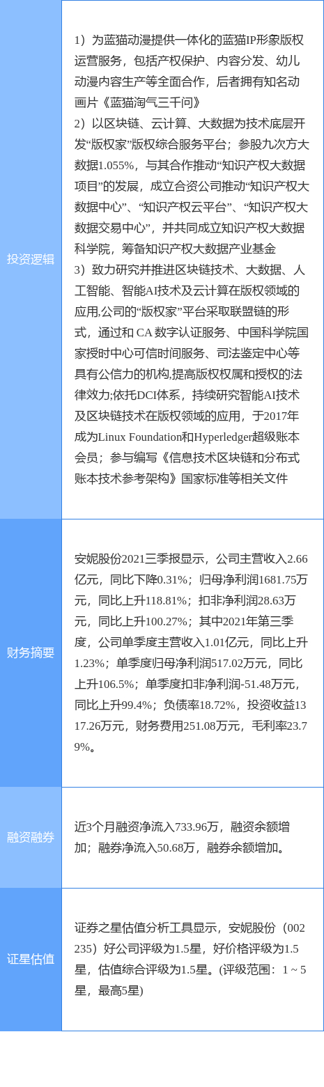 安妮股份涨停收盘,收盘价7.96元。该股于9点31分涨停,10次打开涨停,截止收盘封单资金为2623.85万元,占其流通市值0.6%。
