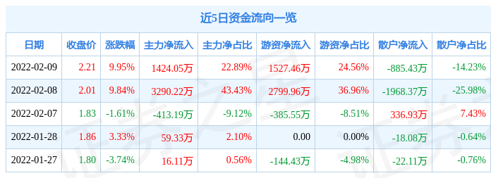 资金流向数据方面,当日主力资金净流入1424.05万元,游资资金净流入1527.46万元,散户资金净流出885.43万元。近5日资金流向一览见下表: