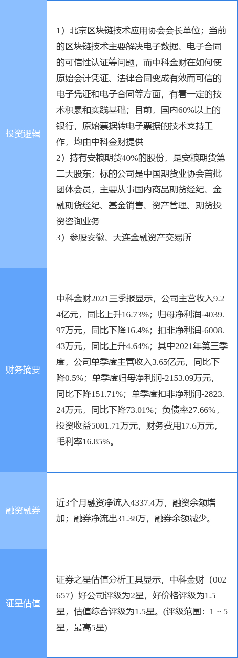 中科金财涨停收盘,收盘价16.92元。该股于13点37分涨停,未打开涨停,截止收盘封单资金为9065.11万元,占其流通市值1.88%。