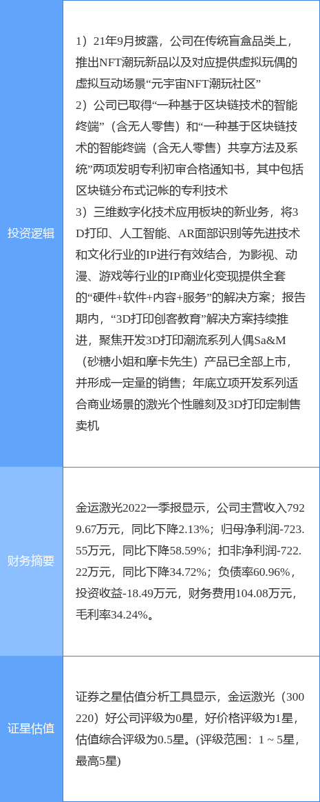 金运激光涨停收盘,收盘价13.64元。该股于13点18分涨停,2次打开涨停,截止收盘封单资金为358.87万元,占其流通市值0.17%。