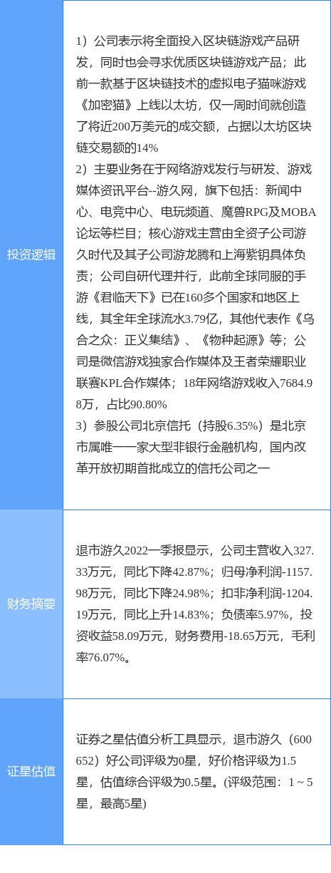 退市游久涨停收盘,收盘价1.17元。该股于9点31分涨停,4次打开涨停,截止收盘封单资金为85.5万元,占其流通市值0.09%。