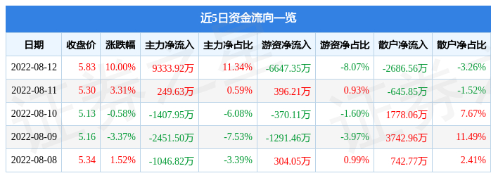 资金流向数据方面,8月12日主力资金净流入9333.92万元,游资资金净流出6647.35万元,散户资金净流出2686.56万元。