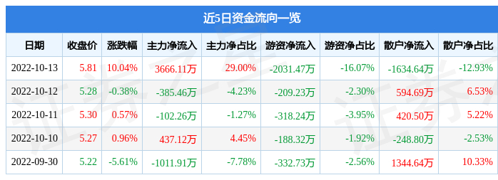 资金流向数据方面,10月13日主力资金净流入3666.11万元,游资资金净流出2031.47万元,散户资金净流出1634.64万元。