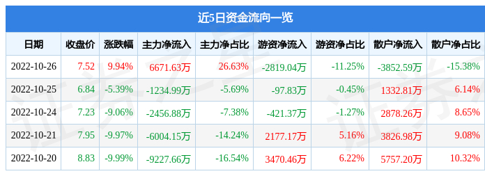 资金流向数据方面,10月26日主力资金净流入6671.63万元,游资资金净流出2819.04万元,散户资金净流出3852.59万元。